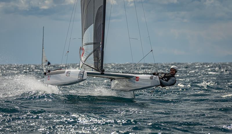 Over on the Open fleet, their 22 boat start could be a masterclass in high end foiling skills although the windier conditions could well give them a decent workout keeping the thinks on the planet's surface. Looking at them, I could pick out maybe 6-7 sailors capable of winning if things went their way. Although, with back-to-back World titles under his belt, Kuba Surowiec, POL 41, has got to be looking for his third crown and has a killer instinct. His boat prep second to none, and if he gets into the zone, and the Sopot-like lumpy conditions arrive, he'll have a wry grin that says it's going OK. His light wind skills are also crucial and his ability to get foiling earlier than most have been race winning on several occasions. But chasing him are a few sailors that could spoil his day. Darren Bundock, AUS 88, has been runner up at PuntAla and has never been outside the top 5 in all the A-Cat Worlds he has raced. He could be on a roll too and the two-time Olympic medallist is fresh off winning the F18 Worlds yet again, his 7th title in the class. However, only Ravi Parent, USA 76, has ever won both F-18 and A-Cat titles in the same year, so maybe he would like to equal that one? Bundy is obviously a brilliantly consistent sailor, he just keeps doggedly in there either defending his lead or chasing the next boat down. Could it be his year finally?