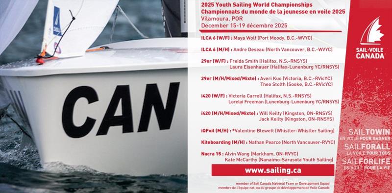 Sail Canada is proud to announce the 14-member team that is set to represent the country at the 2025 Youth Sailing World Championships to be held December 15-19 in Vilamoura, Portugal.